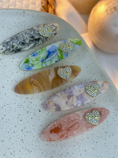 Bico de pato arredondado acetato coração cravejado BCGR01