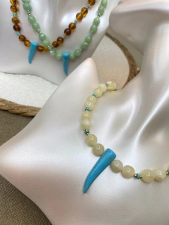 - Início / ACESSÓRIOS / Colares / Colar esferas e dente de sabre turquesa CONG01