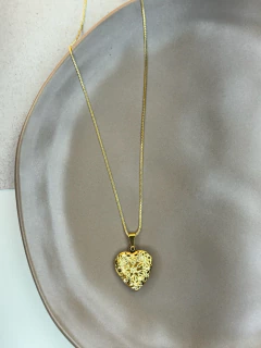 - Início / ACESSÓRIOS / Colares / Colar relicario coração vazado FOLHEADO COMU07