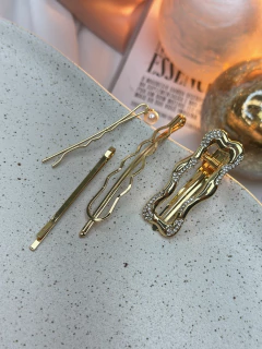 Kit 4 peças quadrado ondulado cravejado BCLR01