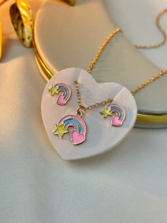 - Início / NOVA COLEÇÃO / Kit brinco e colar infantil sortido ARCO-IRIS INFGR10