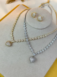 Kit colar/brinco LUXO coração /riviera COSN06