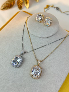 - Início / NOVA COLEÇÃO / Kit colar/brinco LUXO quadrado borda cravejada COSN06
