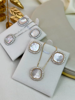 - Início / NOVA COLEÇÃO / Kit colar e brinco quadrado madrepérola COSN07