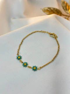 Pulseira FOLHEADO margarida turquesa PUMU12